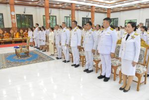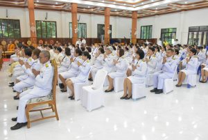 ผู้ช่วยศาสตราจารย์จารุวัลย์ รักษ์มณี รองอธิการบดีฝ่ายบริหาร พร้อมด้วยคณะบุคลากรมหาวิทยาลัยราชภัฏเลย ร่วมกิจกรรมเฉลิมพระเกียรติวันคล้ายวันพระบรมราชสมภพ พระบาทสมเด็จพระปรเมนทรมหาอานันทมหิดล พระอัฐมรามาธิบดินทร ครบรอบ 100 ปี