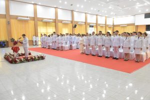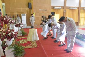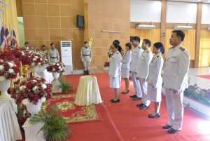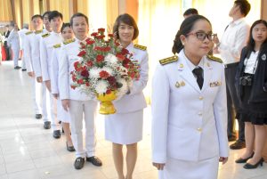 ผู้ช่วยศาสตราจารย์จารุวัลย์ รักษ์มณี รองอธิการบดีฝ่ายบริหาร พร้อมด้วยคณะบุคลากรมหาวิทยาลัยราชภัฏเลย ร่วมวางพานพุ่มดอกไม้สด หน้าพระบรสาทิสลักษณ์พระบาทสมเด็จพระปรเมนทรมหาอานันทมหิดล พระอัฐมรามาธิบดินทร เนื่องในวันคล้ายวันพระบรมราชสมภพ