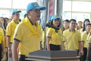 ผู้ช่วยศาสตราจารย์ ดร.ภาณุมาศ พรหมเทศ ผู้รักษาราชการแทนอธิการบดีมหาวิทยาลัยราชภัฏเลย กล่าวเปิดกิจกรรมจิตอาสาบำเพ็ญประโยชน์ และสาธารณะกุศล ถวายเป็นพระราชกุศลพระบาทสมเด็จพระปรเมนทรมหาอานันทมหิดล พระอัฐมรามาธิบดินทร เนื่องในโอกาส