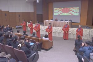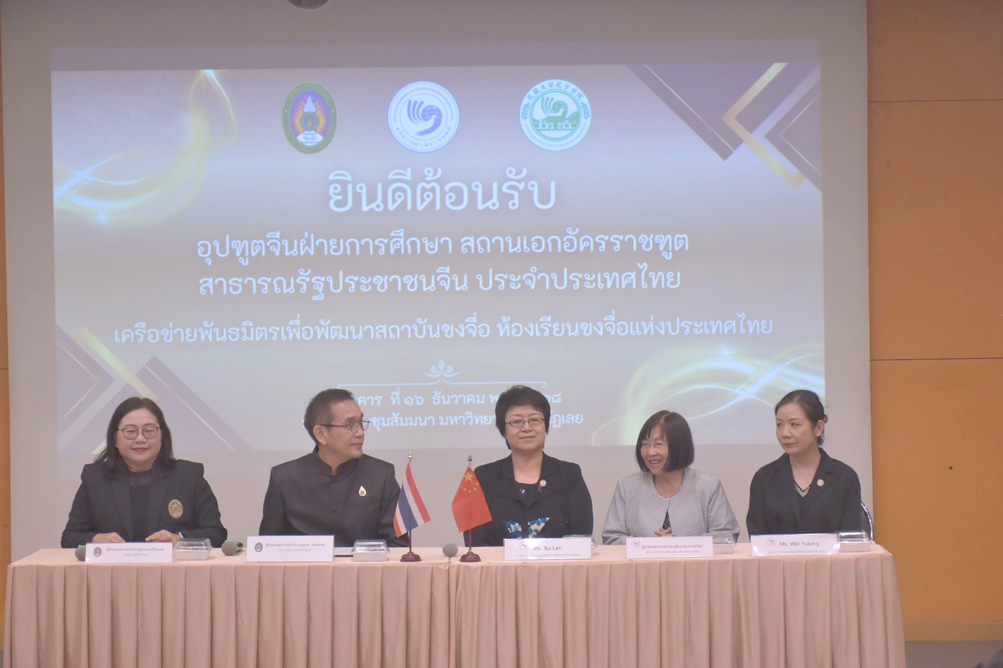 เวลา 13.30 น ผู้ช่วยศาสตราจารย์ ดร.ภาณุมาศ พรหมเทศ ผู้รักษาราชการแทนอธิการบดี ผู้บริหาร คณาจารย์ และนักศึกษาสาขาวิชาภาษาจีนและภาษาอังกฤษเพื่อการสื่อสาร ร่วมต้อนรับเครือข่ายพันธมิตรสถาบันขงจื่อ ห้องเรียนขงจื่อ เพื่อการเรียนการสอนภาษาจีนแห่งประเทศไทย โดยมีอุปทูตจีน และเลขานุการเอก ฝ่ายการศึกษา สถานเอกอัครราชทูตสาธารณรัฐประชาชนจีน ประจำประเทศไทยและผู้อำนวยการสถาบันขงจื่อ จำนวน 18 แห่ง ห้องเรียนขงจื่อ จำนวน 11 แห่ง ร่วมแลกเปลี่ยนแนวทางการพัฒนาการเรียนการสอนภาษาจีนและความร่วมมือทางวิชาการระหว่างสถาบันการศึกษาในประเทศไทยและสาธารณรัฐประชาชนจีน ณ ห้องประชุมสัมนา อาคาร 50 พรรษา