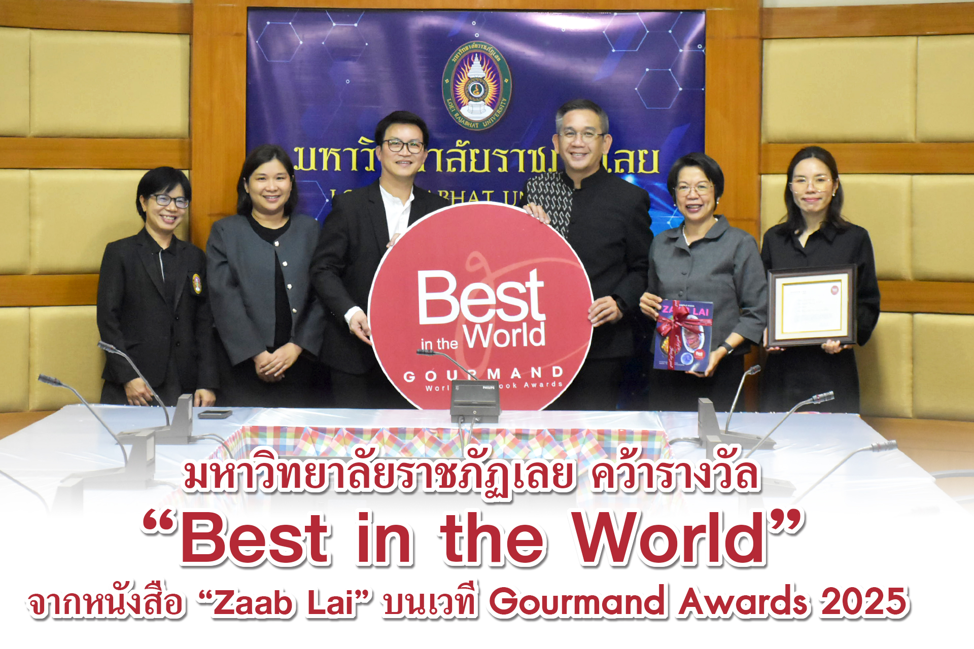ผู้ช่วยศาสตราจารย์ ดร.ภาณุมาศ พรหมมาศ อธิการบดีมหาวิทยาลัยราชภัฏเลย ร่วมแสดงความยินดีกับคณะนักวิจัยมหาวิทยาลัยราชภัฏเลย ที่ได้รับทุนสนับสนุนจาก หน่วยบริหารและจัดการทุนด้านการเพิ่มความสามารถในการแข่งขันของประเทศ (บพข.) สังกัดสำนักงานสภานโยบายการอุดมศึกษา วิทยาศาสตร์ วิจัยและนวัตกรรมแห่งชาติ (สอวช.) กระทรวงการอุดมศึกษา วิทยาศาสตร์ วิจัยและนวัตกรรม (อว.) โดยเป็นงานวิจัยภายใต้กลุ่มท่องเที่ยวและเศรษฐกิจสร้างสรรค์ ในโครงการวิจัยเรื่อง “การสร้างเศรษฐกิจมูลค่าสูงสำหรับอาหารไทยพื้นถิ่นภาคอีสานในตลาดระเบียงเศรษฐกิจไทย-ลาว-จีน ด้วยซอฟต์พาวเวอร์ไทย” คว้ารางวัล “Best in the World” จากหนังสือ Zaad Lai บนเวที Gourmand Awards 2025″ โดยมี ผู้ช่วยศาสตราจารย์ ดร.สุพรรณี พฤกษา รองอธิการบดีฝ่ายวิจัยและประกันคุณภาพ ดร.สัญชัย เกียรติทรงชัย คณบดีคณะวิทยาการ ผู้ช่วยศาตราจารย์ ดร.เนตรนภา พงเพ็ชร ผู้อำนวยการสถาบันวิจัย นางวิลัยพร ยาข้ามป้อม รองผู้อำนวยการสถาบันวิจัยและพัฒนา และ ดร.ขวัญคณิศร์ อินทรตระกูล เข้าพบและได้ร่วมหารือเรื่องการพัฒนาผลิตภัณฑ์ของจังหวัดเลย ณ ห้องประชุมชั้น 8 อาคารเรียนรวม 8 ชั้น มหาวิทยาลัยราชภัฏเลย วันที่ 11 กุมภาพันธ์ 2569